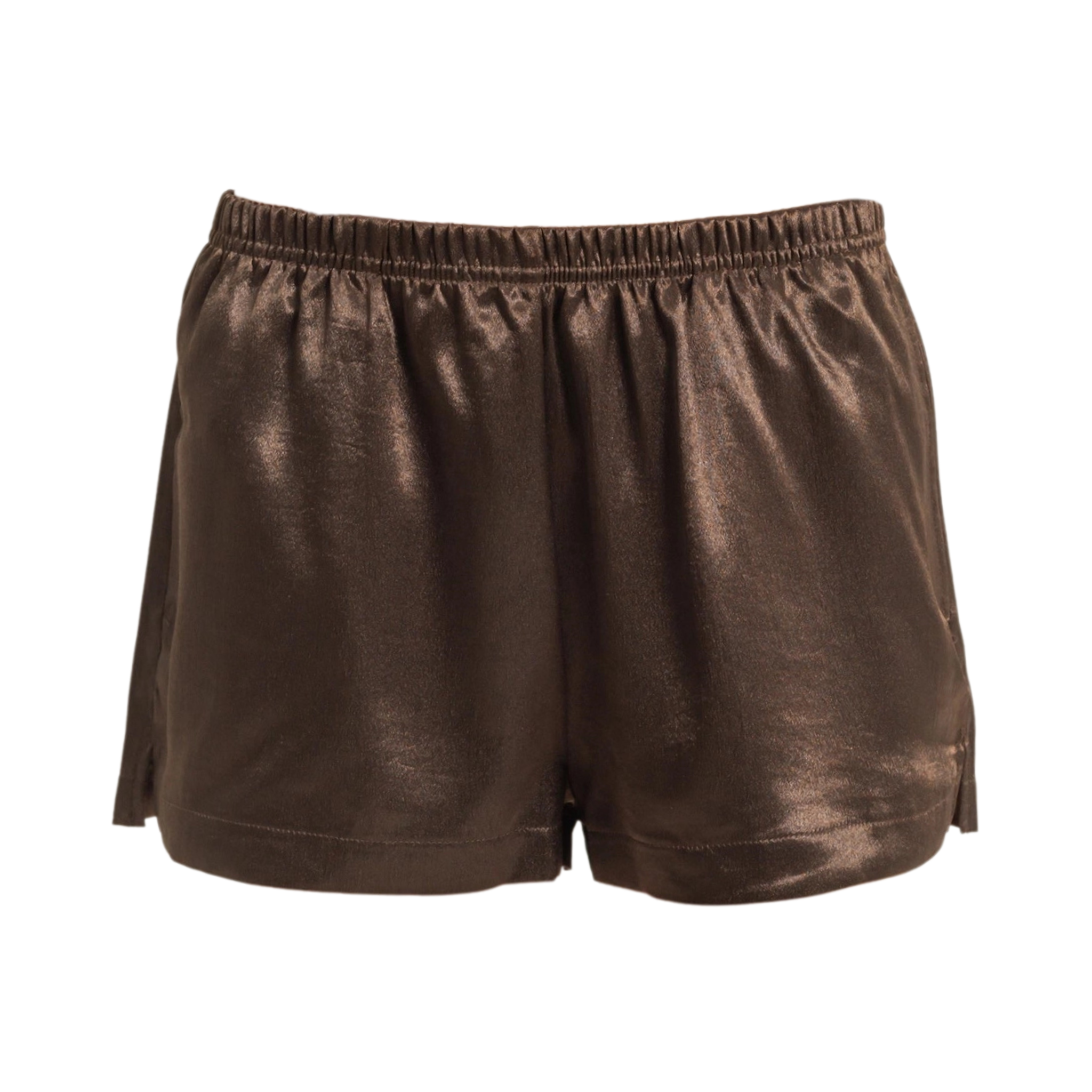 These chocolate brown satin lounge shorts are designed for relaxed wear while maintaining a polished silhouette. The smooth satin fabric drapes softly against the body, while the elastic waistband provides a comfortable, flexible fit.