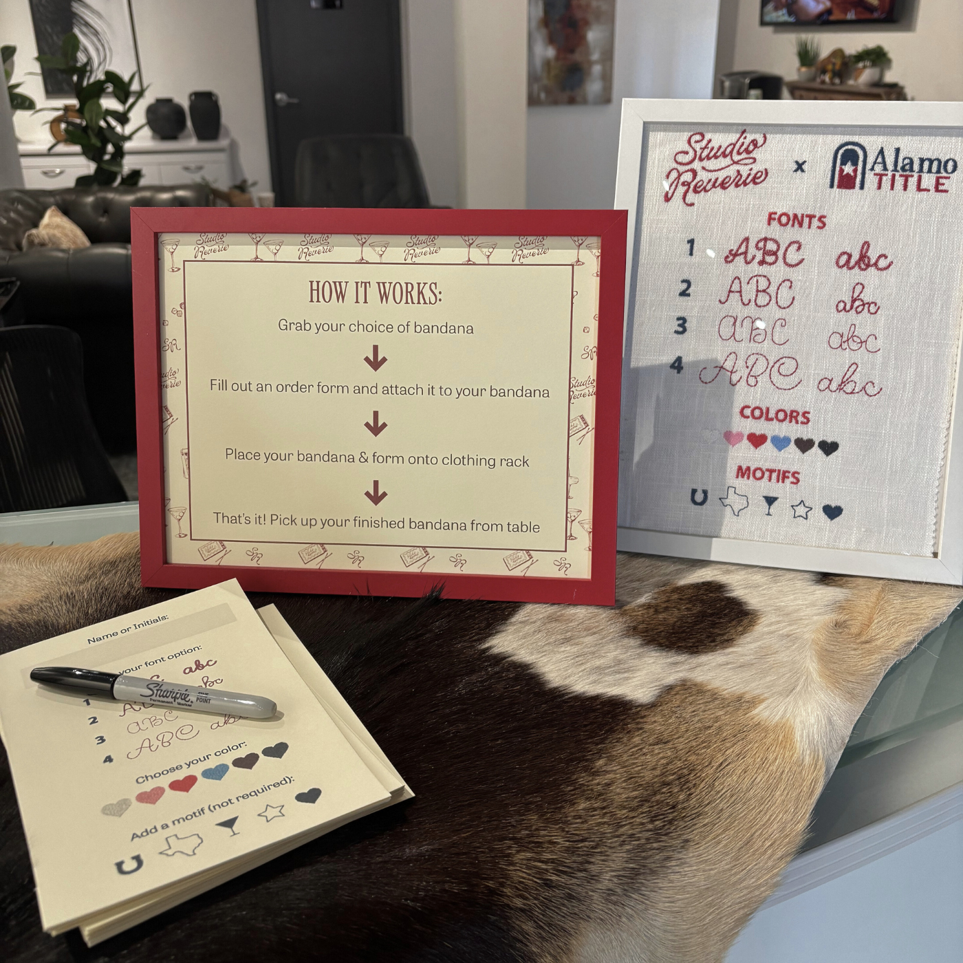 Guests can choose designs, initials, or phrases and watch as their items are embroidered on-site in real time.